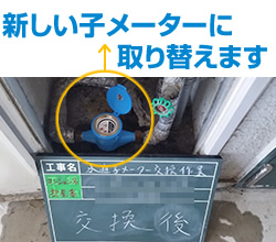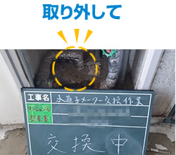 入居者様へご案内配布後、 メーター交換作業をいたします。交換中は一時的に断水いたします。